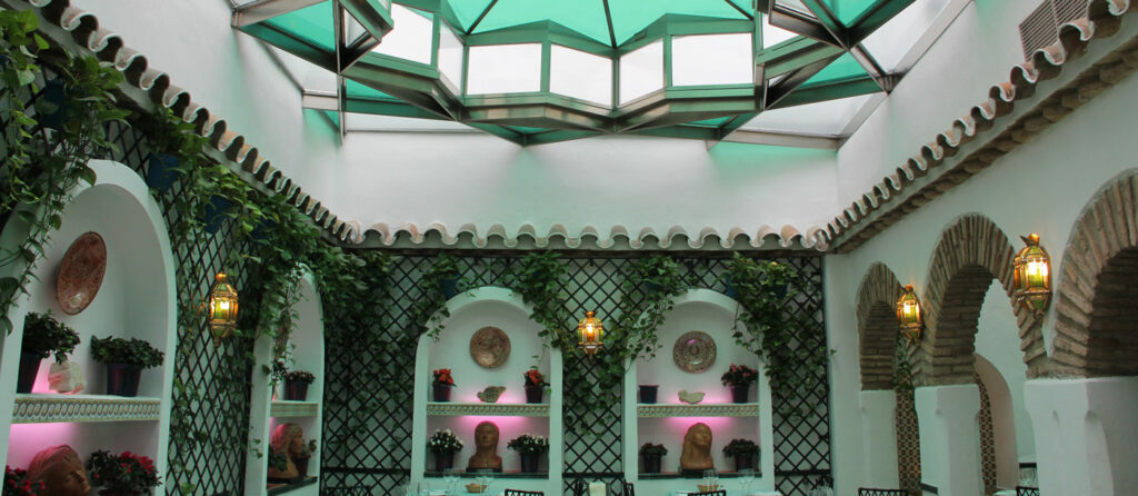 El murmullo del agua de su fuente, el aroma a dama de noche y su adecuada climatización, hacen del Patio el lugar más veces escogido por nuestros clientes, que ocupan sus mesas durante todas las estaciones del año.